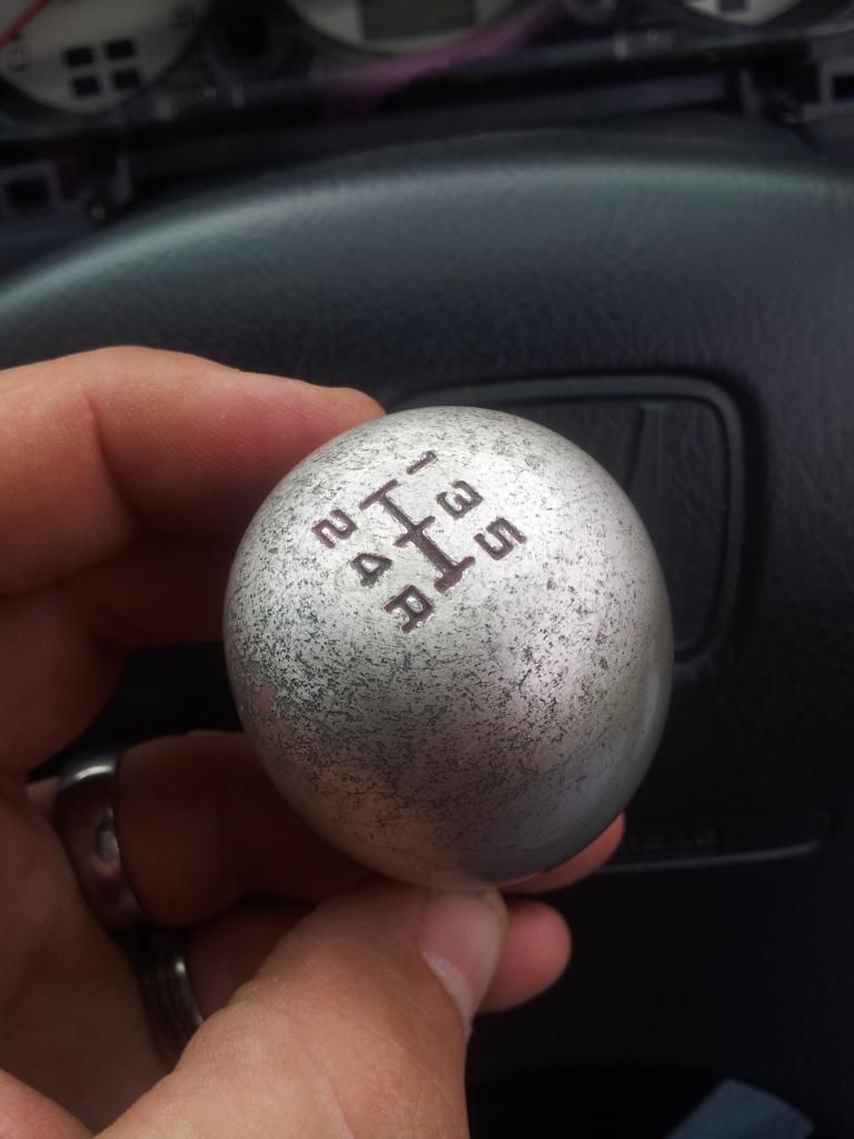 Whilst I was there I just couldn't stand the state of the gear knob as it was all pitted and knackered so I spent the evening sanding it down to get rid of all the anodising and holes, this isn't finished yet though as I want to polish is but I only had as high as 1500 grit so its dull alloy at the moment but looks so much better already :)